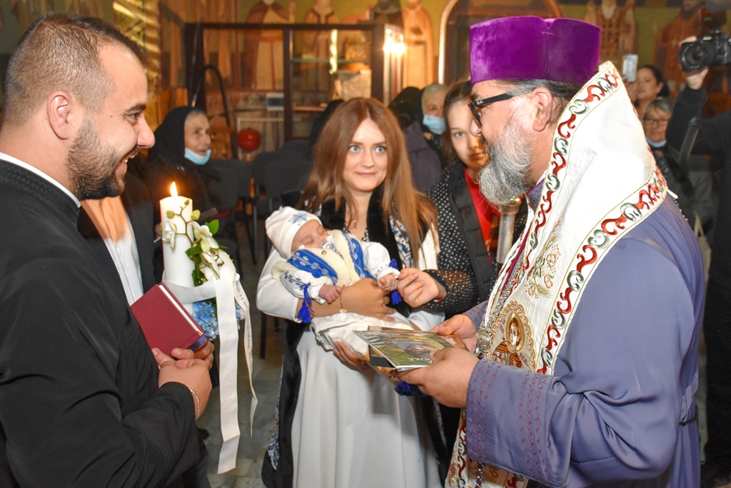 Preasfinţitul Părinte Ambrozie a săvârsit Taina Sfântului Botez pentru pruncul Dimitrie Augustin Podaru.