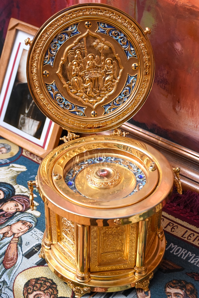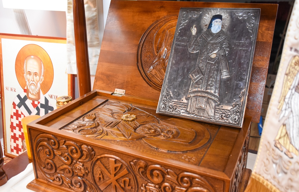 Pentru bucuria duhovnicească a credincioşilor au fost așezate spre închinare, într-un loc special amenajat, părticele din moaștele Sfântului Ierarh Nectarie de la Eghina (Grecia), vindecătorul de cancer și ale Sfântului Ambrozie, ce sunt pastrate la acest asezământ.