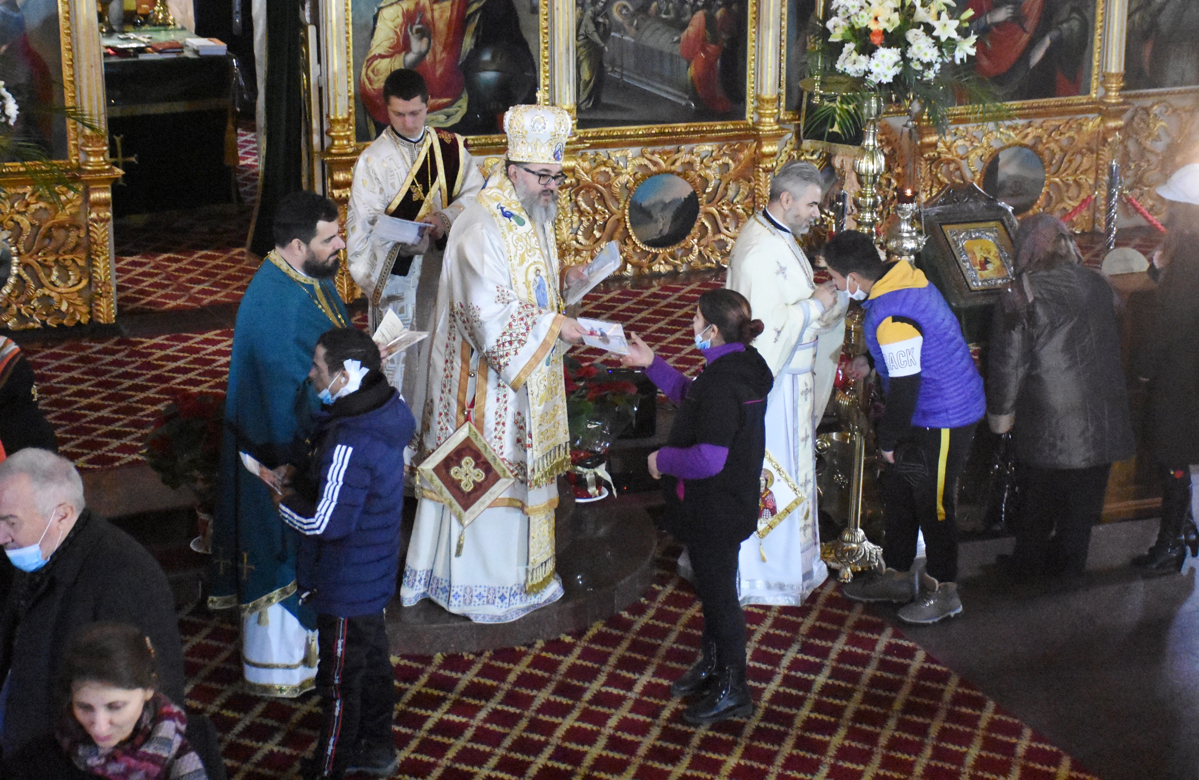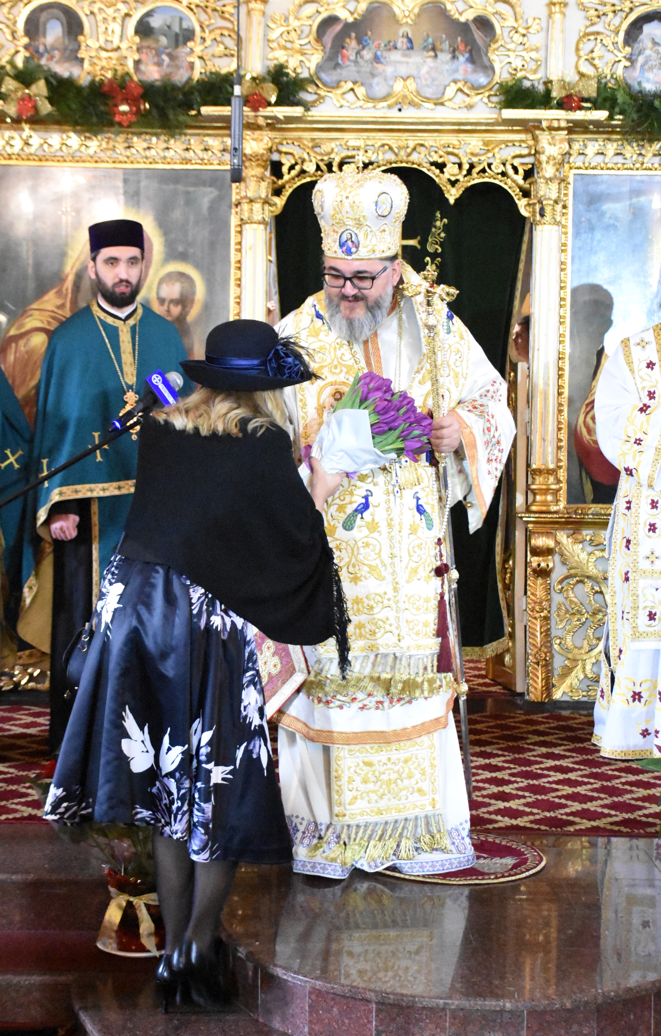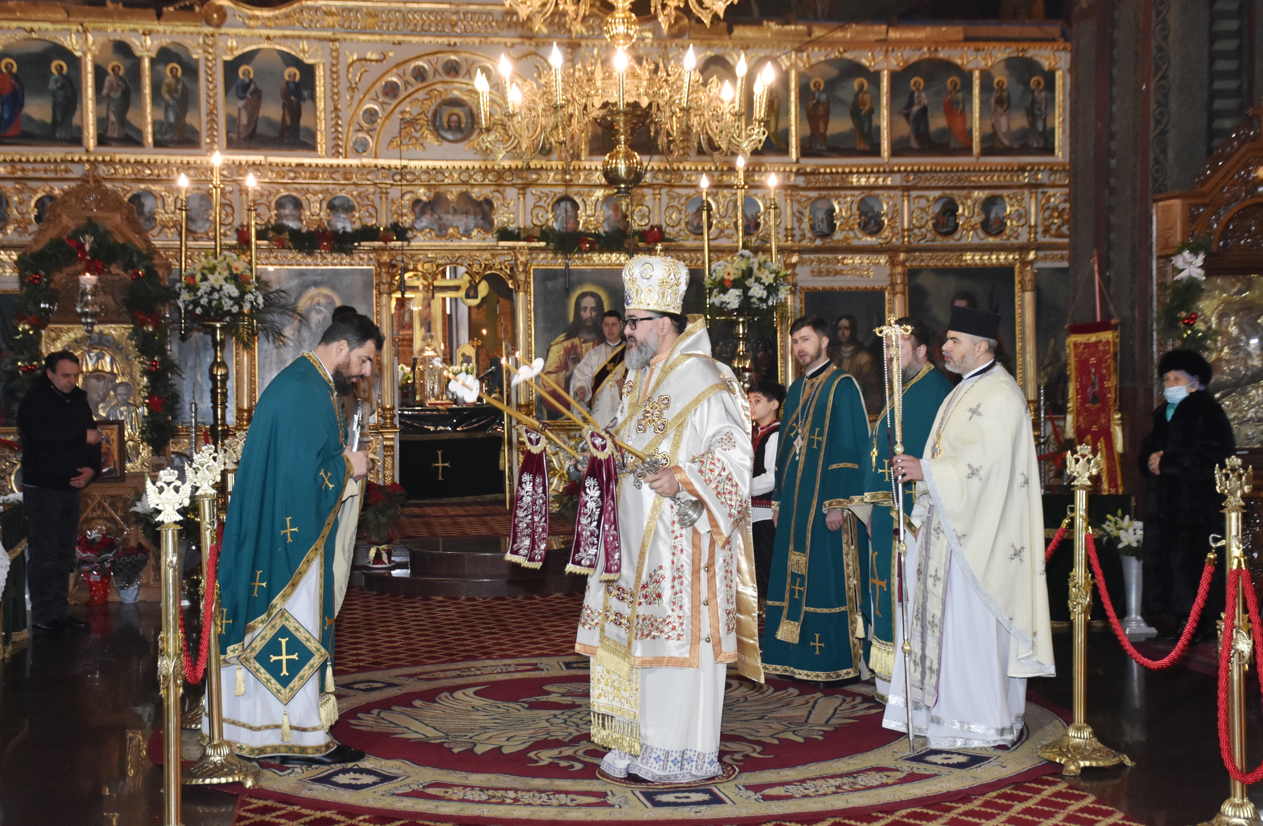 Ierarhul l-a felicitat pe părintele Marian Ciocănel, parohul catedralei, pentru activitatea pastoral-misionară desfășurată și i-a binecuvântat pe credincioșii prezenți, oferindu-le pastorala prilejuită de Praznicul  Naşterii Domnului, icoane, ultimele numere ale revistelor Familia Ortodoxă.