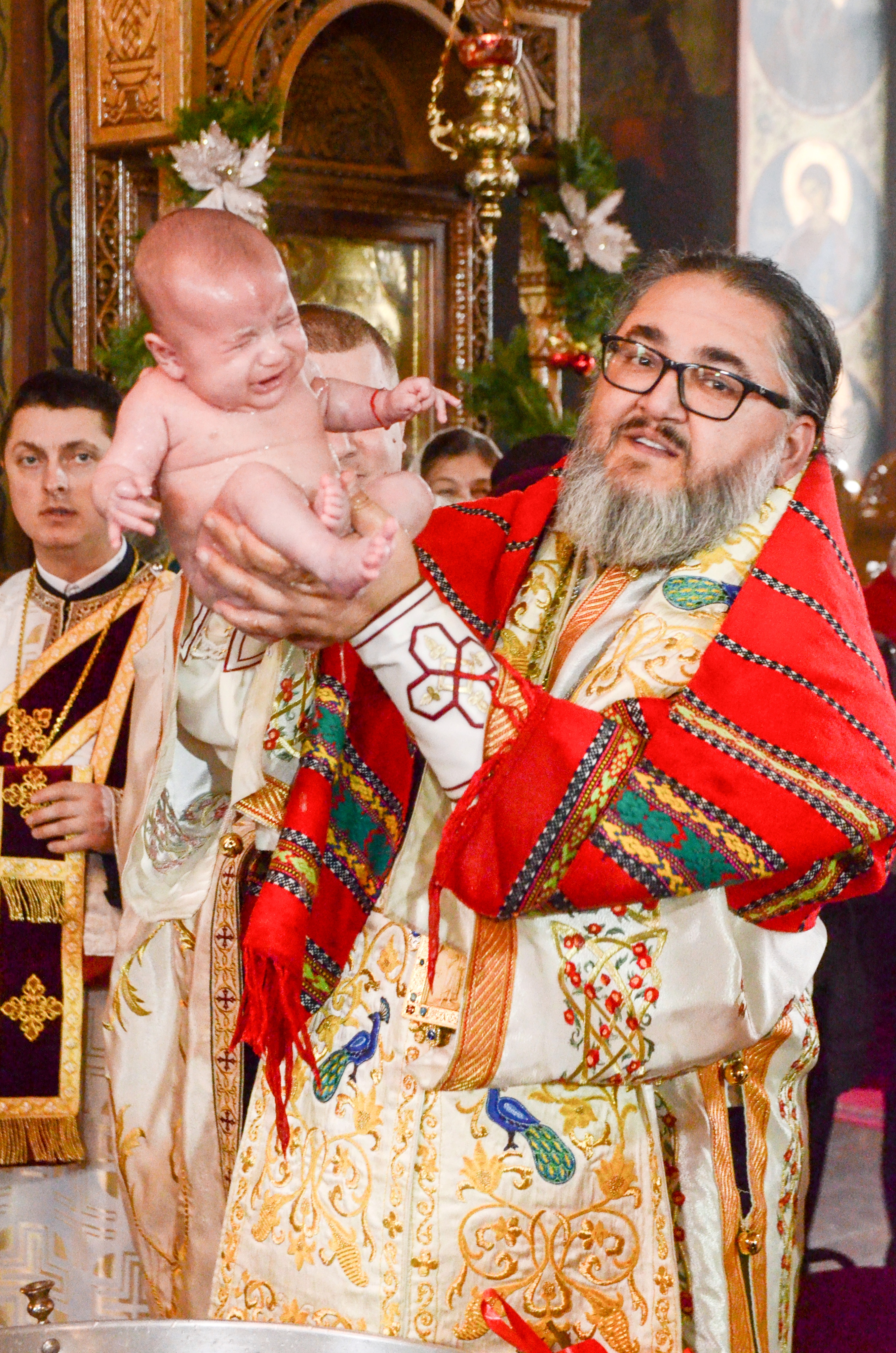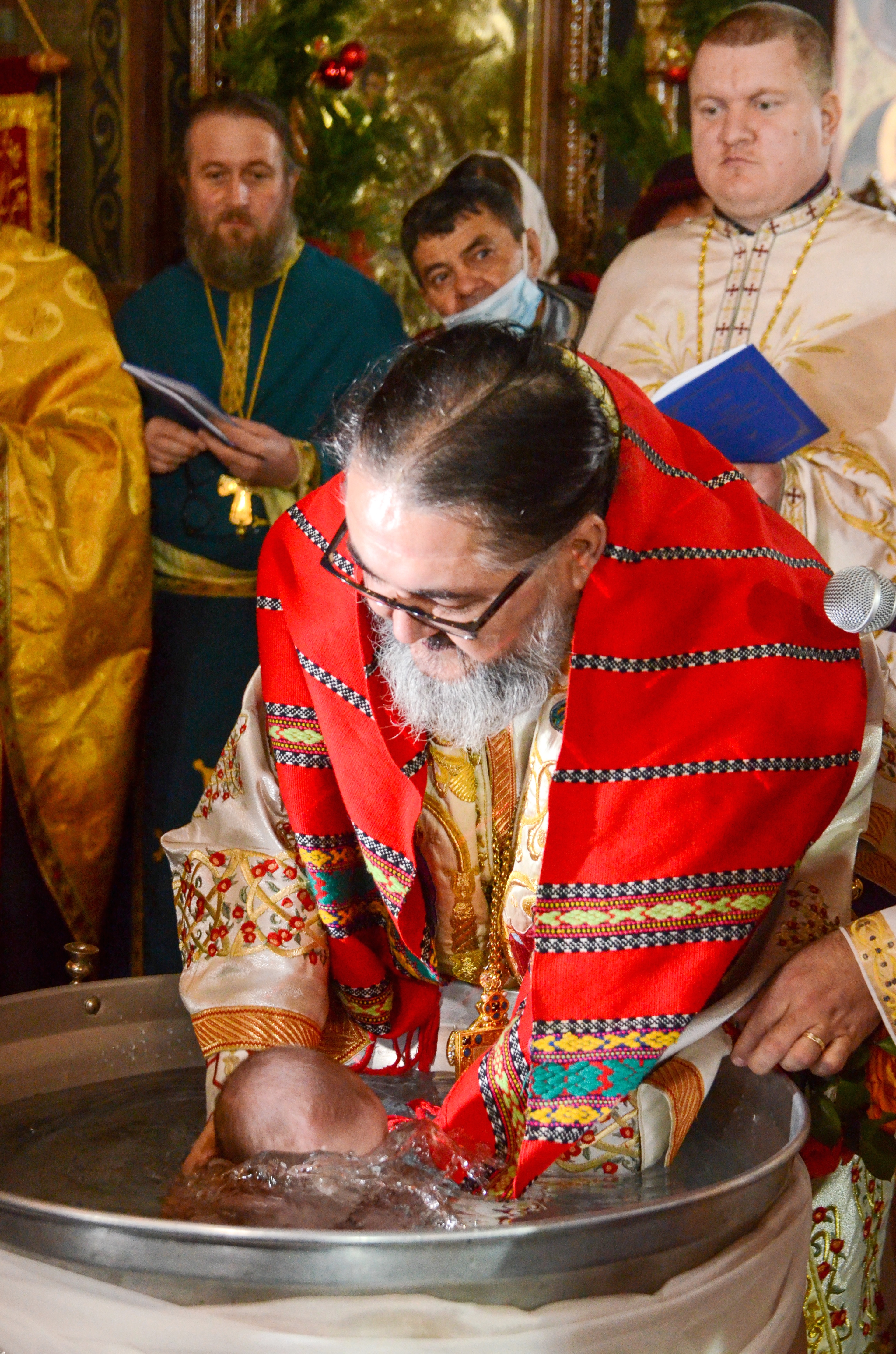 Preasfinţitul Părinte Ambrozie a săvârsit Taina Sfântului Botez pentru pruncul Haris Dimitrie Ciocănel, fiul părintelui paroh Marian Ciocănel.