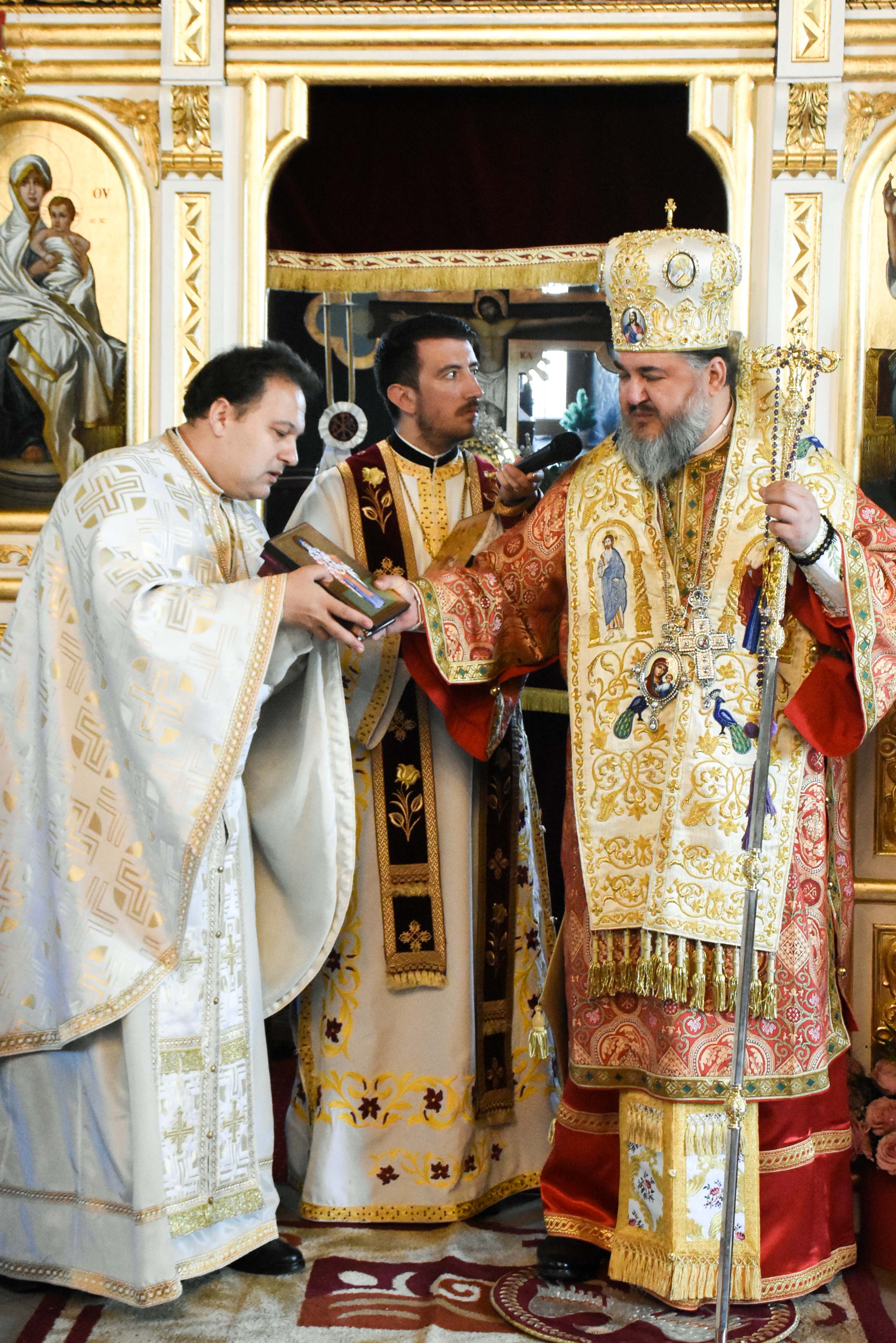 Ierarhul a felicitat Părintele paroh Georgescu Alin și părintele coslujitor Aurel Popescu de la Parohia Greaca, pentru activitatea pastoral-misionară desfășurată și pentru lucrările din biserică, oferindu-le mai multe daruri.