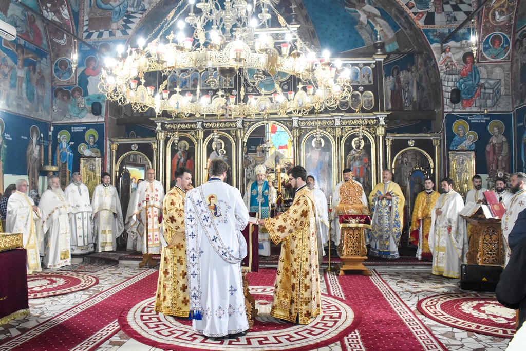 Cu acest prilej, Sfânta Liturghie a fost săvârșită de Întâistătătorul eparhiei noastre, Preasfințitul Părinte Episcop Ambrozie, înconjurat de un ales sobor de preoți și diaconi.