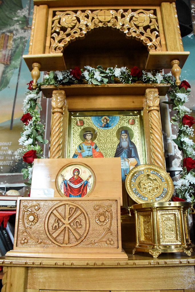 Credincioşi prezenți au avut posibilitatea să se închine la Icoana Maicii Domnului – Prodromița, copie lucrată la Sf. Munte Athos, de la Noua Catedrală Episcopală ,,Sf. M. Mc. Gheorghe” din municipiul Giurgiu, Icoana Sfântului Constantin Brâncoveanu, care adăpostește părticele din Sfintele Sale Moaşte, de la biserica Sfinților Martiri Brâncoveni din Giurgiu, părticele din Moaștele Sfântului Nectarie de la Eghina (Grecia), vindecătorul de cancer, aduse de la biserica Sf. Gheorghe nou din Giurgiu, precum și la o părticică din moaștele ,,Sf. Cuv. Siluan Athonitul” ce se află spre închinare în biserica parohiei.