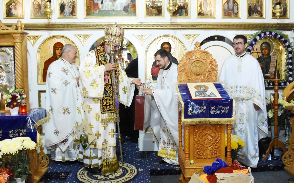 Ierarhul a felicitat pe părintele paroh Luca Severian,  pictor bisericesc, dar și profesor la Seminarul Teologic Teoctist Patriarhul din Giurgiu,  oferindu-i mai multe daruri, iar copiilor parohiei, Preasfințitul Părinte, le-a dăruit diverse hăinuțe de sezon . La final, părintele paroh Luca Severian a mulțumit Întâistătorului nostru pentru binecuvântare, preoților pentru împreună slujire.