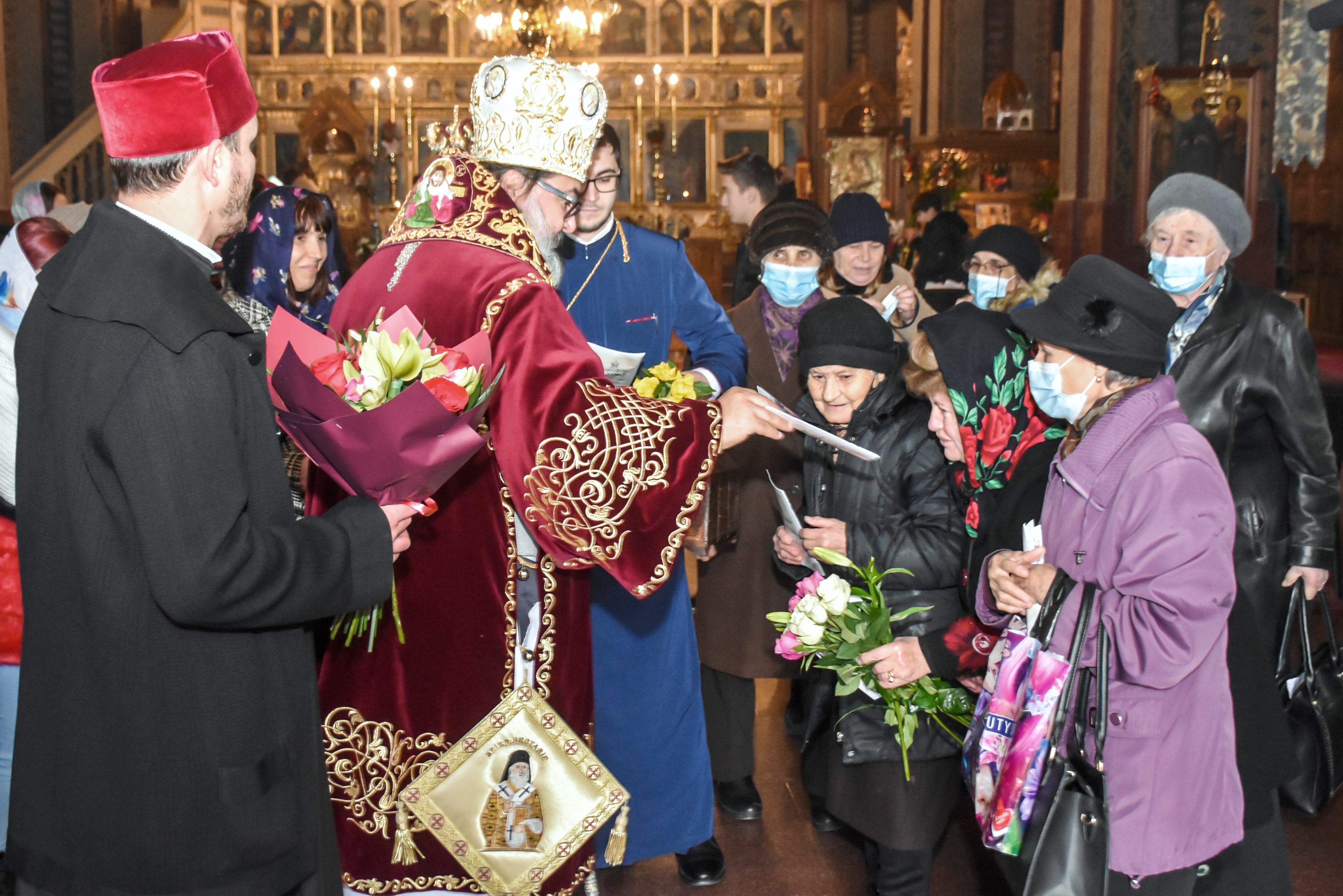 Ierarhul l-a felicitat pe părintele Marian Ciocănel, parohul catedralei, pentru activitatea pastoral-misionară desfășurată și i-a binecuvântat pe credincioșii prezenți, oferindu-le pastorala prilejuită de Praznicul  Naşterii Domnului, icoane, ultimele numere ale revistelor Familia Ortodoxă