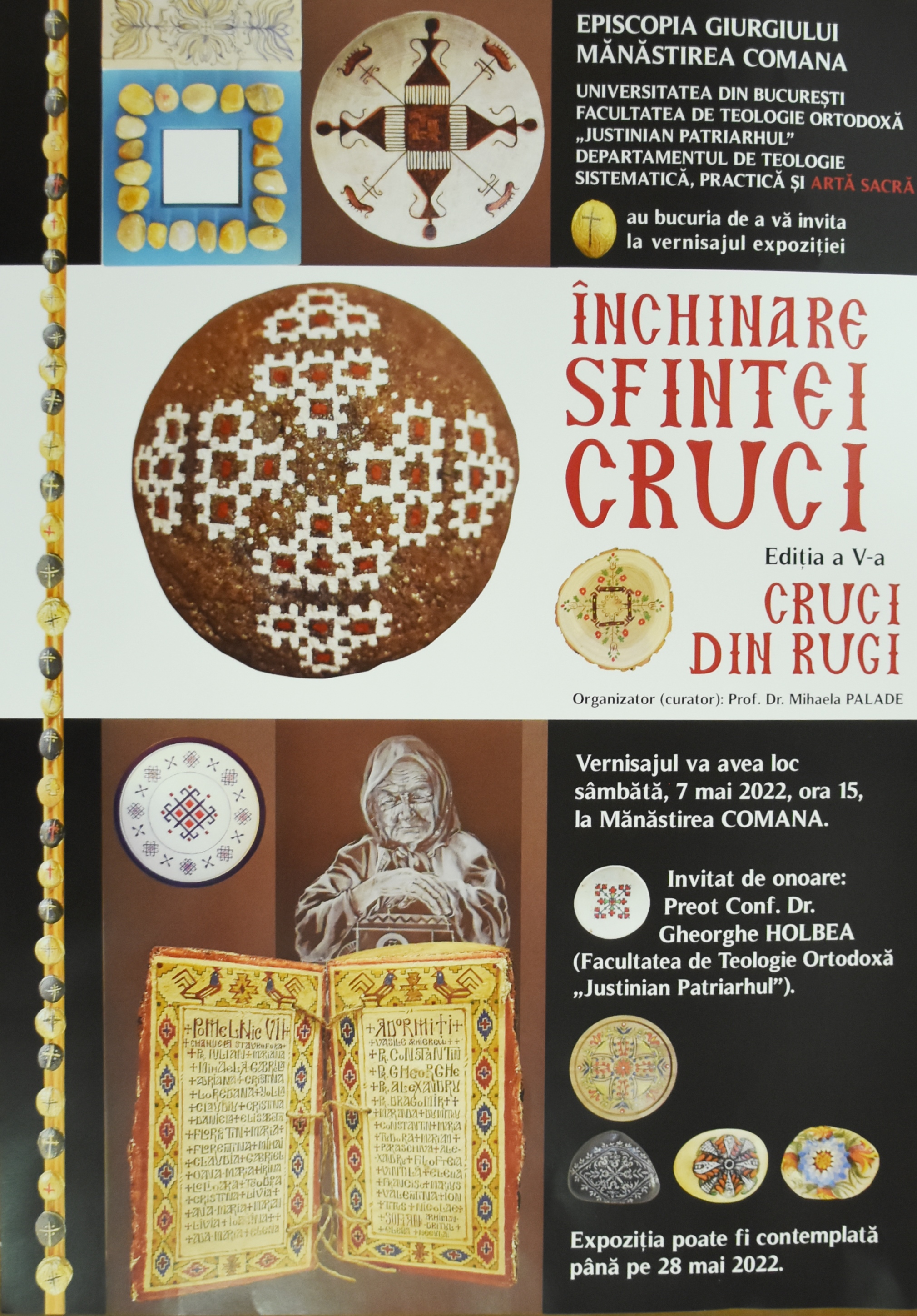 În voievodala Mănăstire Comana din județul Giurgiu, cu binecuvântarea Preasfinţitului Părinte Dr. Ambrozie, Episcopul Giurgiului, a avut loc sâmbătă, 7 mai 2022, vernisajul celei de a V-a ediții a expoziției ,,Închinare Sfintei Cruci’’, expoziție ce anul acesta a fost denumită ,,Cruci din Rugi’’.