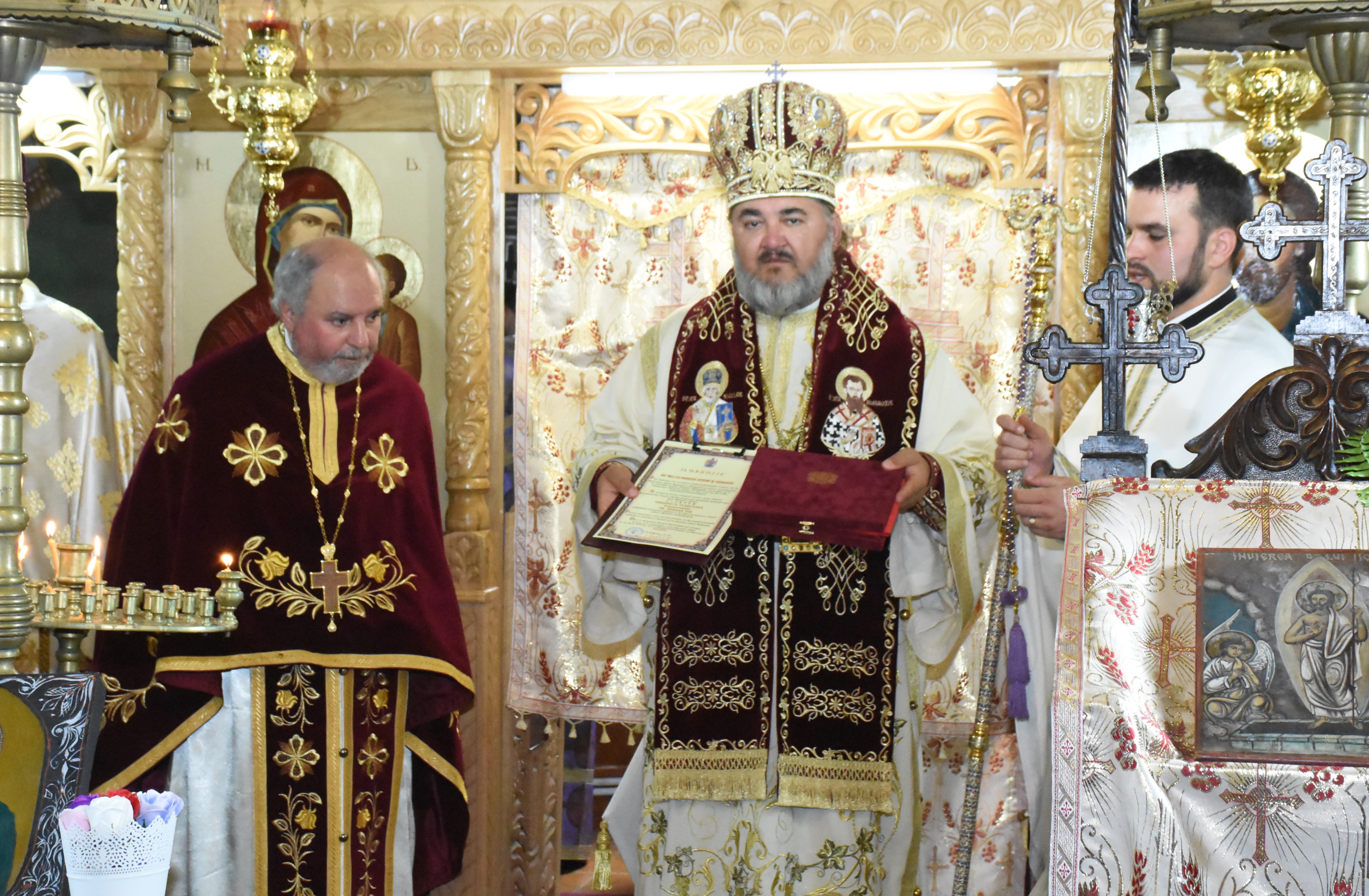 După cuvântul de învățătură, Preasfințitul Părinte Ambrozie l-a felicitat pe părintele Șerban Ion, parohul bisericii pentru întreaga activitate desfășurată timp de patruzeci de ani, în plan pastoral-misionar, social – filantropic și administrativ-gospodăresc, oferindu-i o frumoasă icoană. Totodată, Preasfințitul Părinte Episcop Ambrozie l-a prezentat pe noul paroh al bisericii, în persoana părintelui Petrișor Marius Ciulacu, oferindu-i și acestuia o frumoasă icoană.