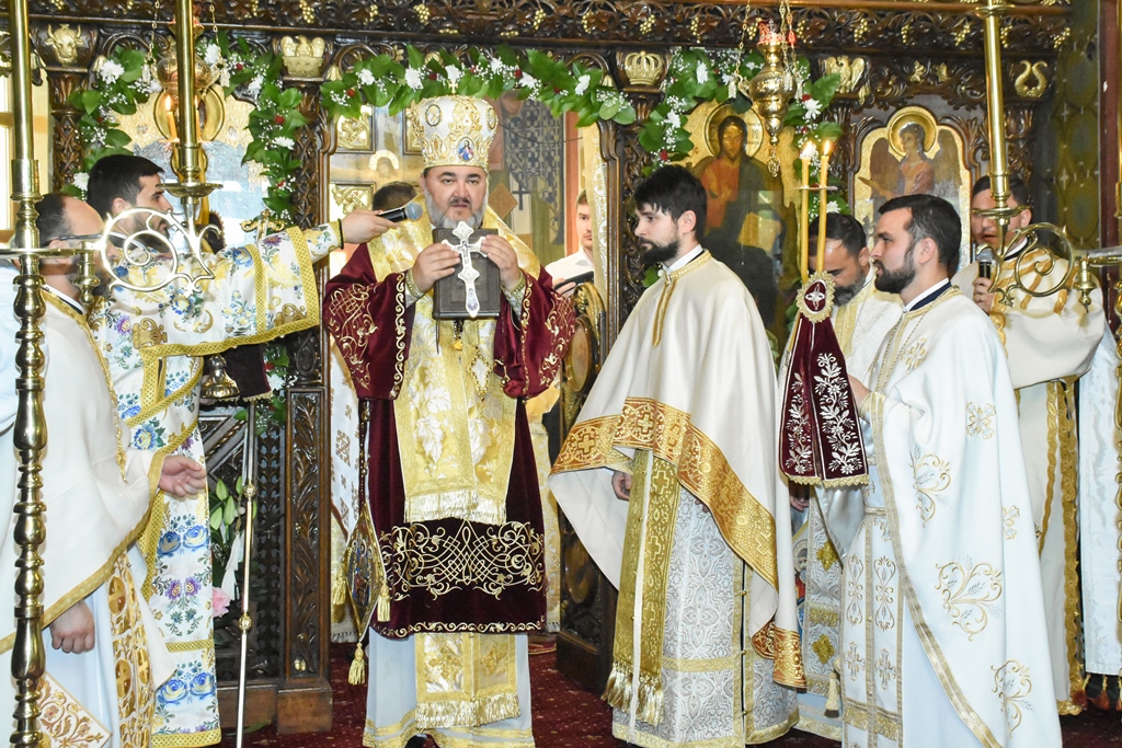 Cu acest prilej, numeroși credincioși au luat parte la Sfânta și Dumnezeiasca Liturghie, săvârșită de Preasfințitul Părinte Ambrozie, Episcopul Giurgiului, înconjurat de un ales sobor de preoți și de diaconi în biserica „Înălțarea Domnului“.